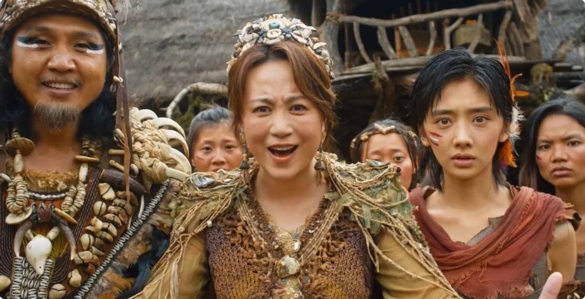 马丽颠覆以往的荧幕形象,饰演气场全开的原始部落族长,一身极具民族特色的装扮,搭配她自带的喜剧气场,一句台词一个眼神都充满笑点。