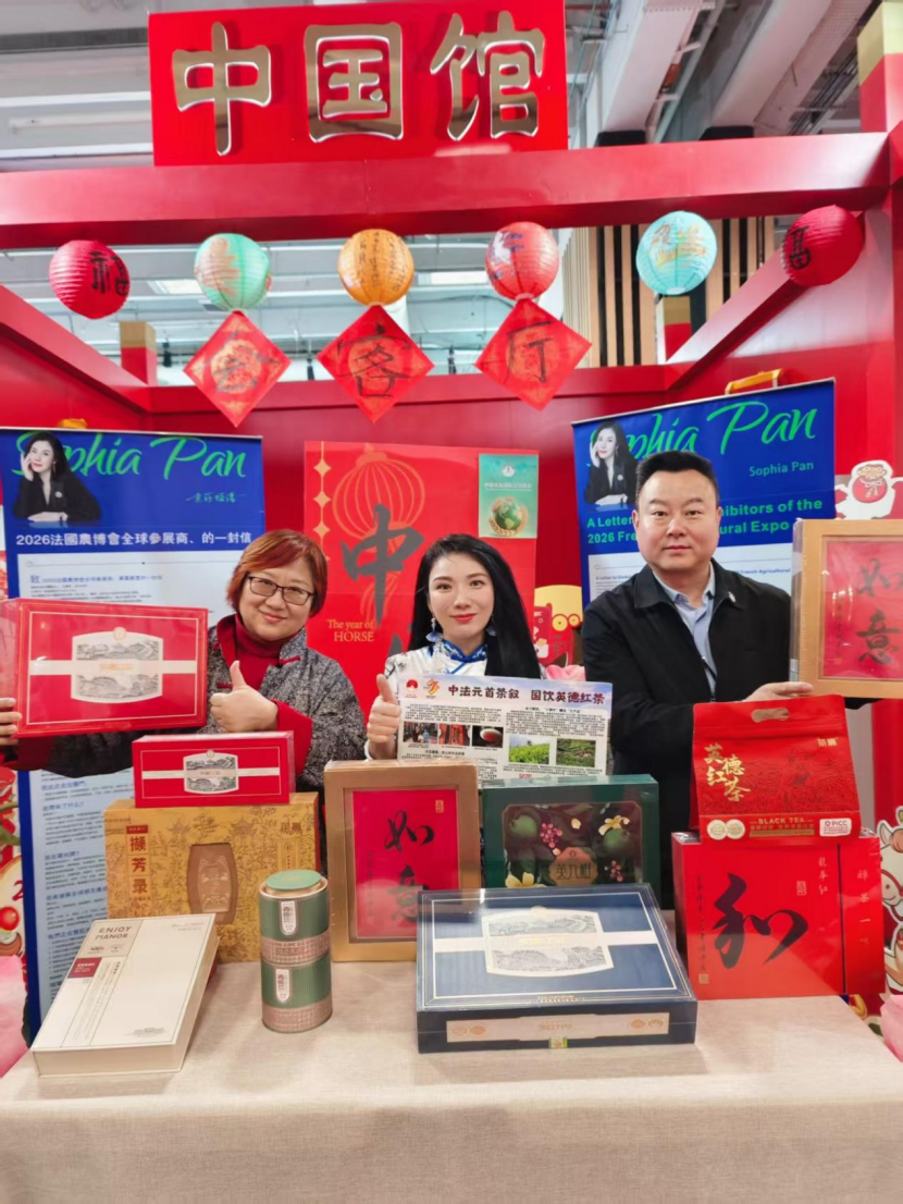 早在2023年4月,中法两国元首在广州松园非正式会晤时品茗的茶品之一正是英德红茶,这份东方茶香成为中法文化交流的重要纽带。2026年2月12日(当地时间2月11日),“金马迎瑞”中法马年春节晚会在巴黎尚蒂伊赛马场举行,英德红茶作为特色伴手礼赠予现场600余位嘉宾,传递岭南文化底蕴,展现“广货行天下”的风采。