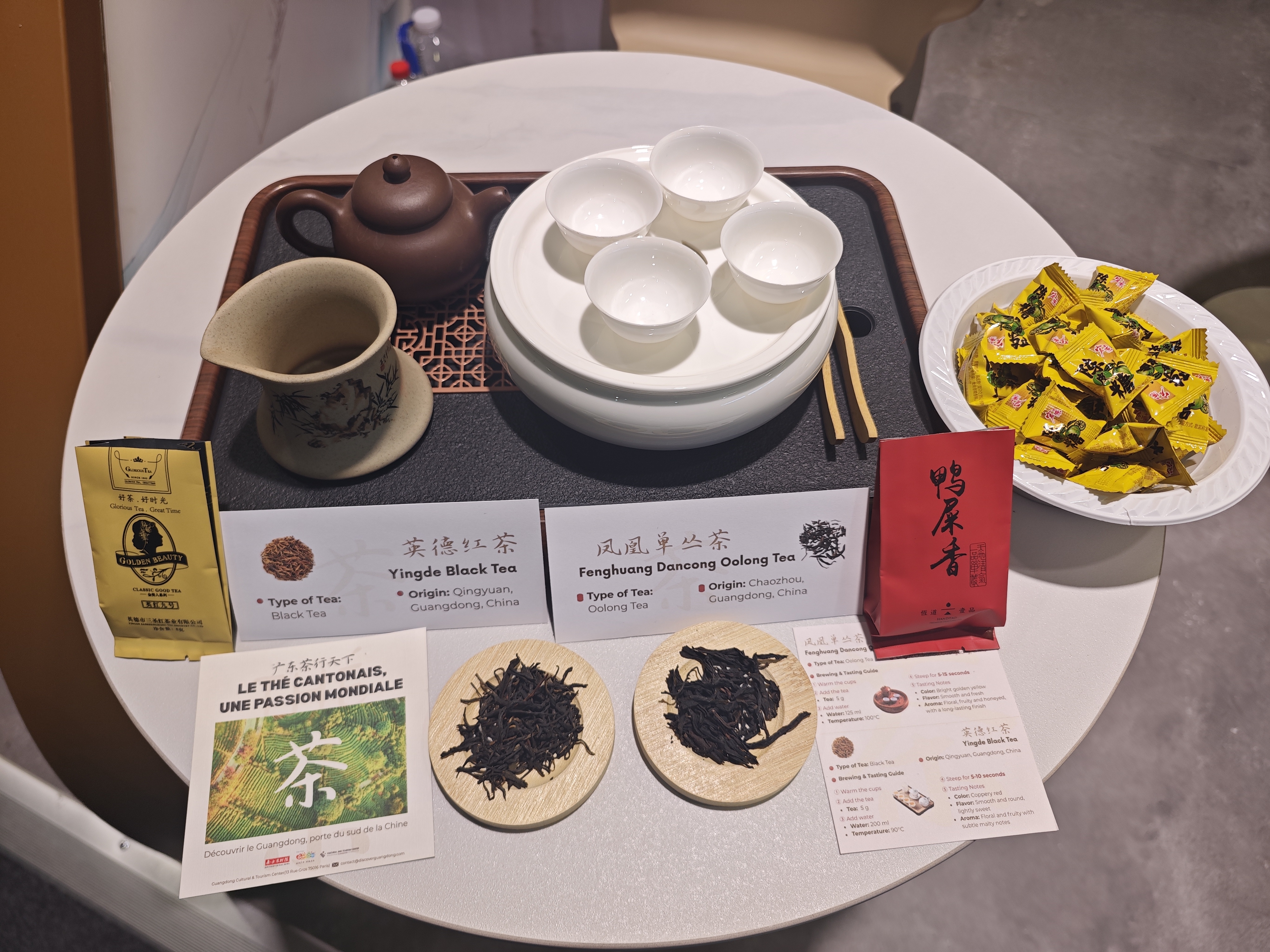 广东文旅海外推广中心工作人员介绍,英德红茶等广东茶在欧洲深受当地消费者的喜爱,目前已放在推广中心的巴黎中心陈设,作为“广货行天下”的常设展示。