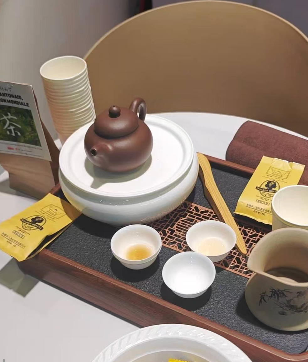 在展会推广方面,英德红茶积极亮相国际顶级盛会,彰显品质实力。近日举办的第62届法国国际农业博览会上,英德红茶作为粤味珍品代表亮相中国馆,凭借完整的产业链实力与独特的风味品质,成为展区焦点,吸引了国际客商与各界人士的广泛关注,中国驻法国大使邓励、法国外交部部长让-诺埃尔·巴罗等中外嘉宾均对其给予高度认可与关注,为英德红茶对接欧洲主流市场搭建了重要平台,标志着英德红茶持续迈入国际化发展新阶段。